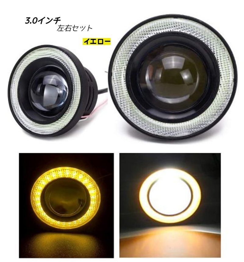 - Kstyle イエロー 3.0 LED フォグランプ 汎用 イカリング 付き 30w 高性能 COB 防水 左右