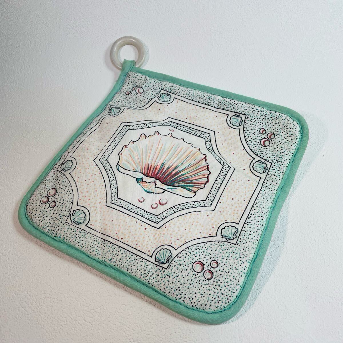 - 鍋敷 なべしき 鍋つかみ 20センチ角 シェル柄 キルティング 布