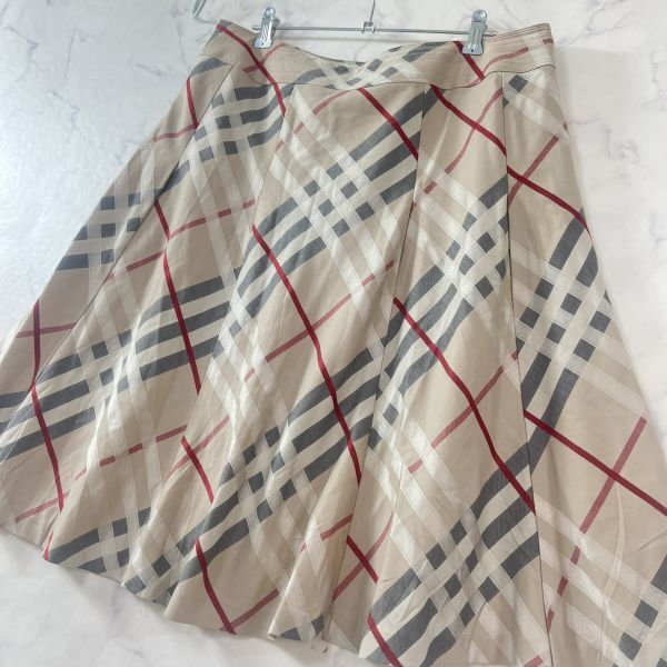 - 【XL~3L】 バーバリーロンドン シルク混フレアースカート ロング ノバチェック ベージュ系 BURBERRY LONDON B1527