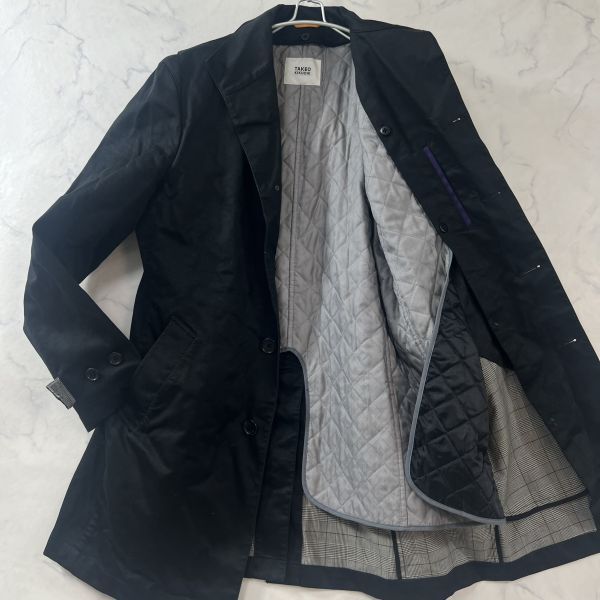 - 【L】美品タケオキクチトレンチコート 後ろベルト キルティングライナー2way チェック ロング メンズ M~L 黒 ブラック TAKEO KIKUCHI B1508