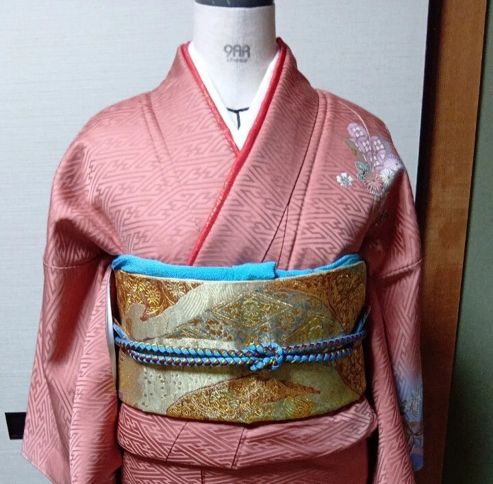 - 袋帯つき訪問着 吉祥御所車草花文 暈し染め 金彩 未使用 しつけ糸つき 結婚式 フォーマル 吉祥文様 お嫁にいかれるお嬢様に