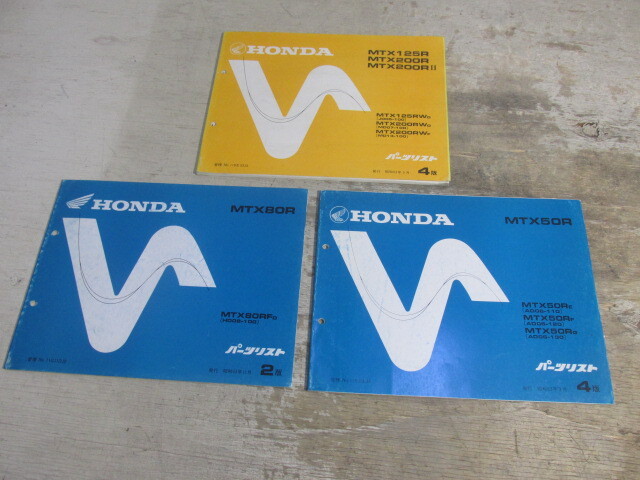 - ホンダ 二輪 50 80 125 200 オフロード 昭和63年 MTX パーツリスト 3冊