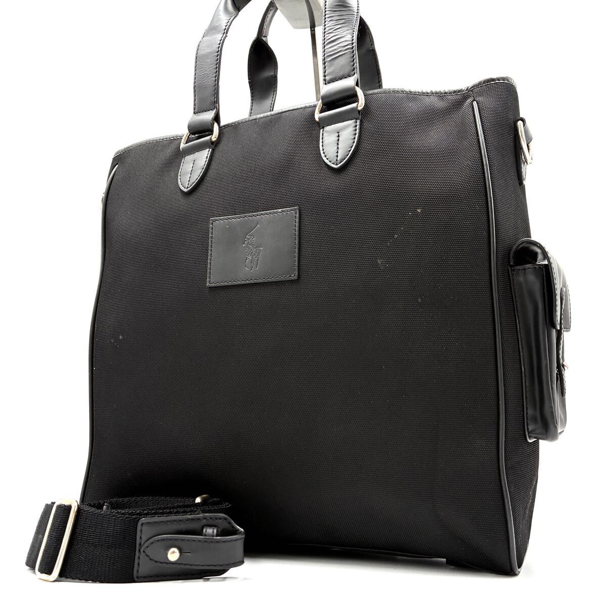 - 1円 正規品 美品 Ralph Lauren ラルフローレン ビジネスバッグ トートバッグ メンズ 2way ショルダーバッグ キャンバス レザー 黒 A4 PC