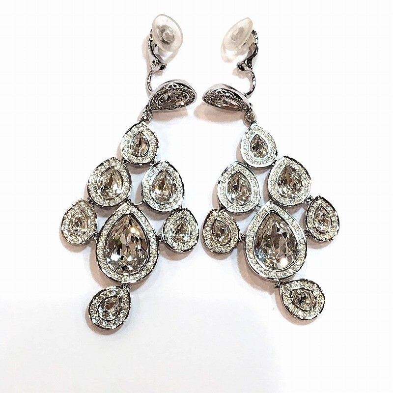 > スワロフスキー(SWAROVSKI) シルバーメッキ ティアドロップ クリスタルビジュー イヤリング 【中古】 JA-23198