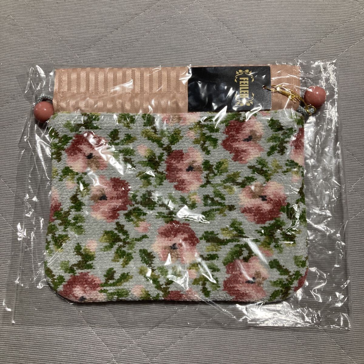 - 新品 フェイラー FEILER シンクオブミー 巾着 ポーチ 花柄 フラワー ボタニカル シュニール織 タオル地 フリル ラッフル