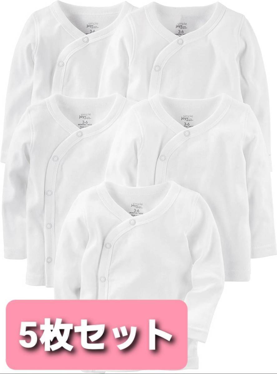 - 送料無料 5枚組セット ベビー下着 長袖シャツ 前開き ベビー 下着 ホワイト 46-55 [Simple Joys by Carter's] 白 新品 未使用
