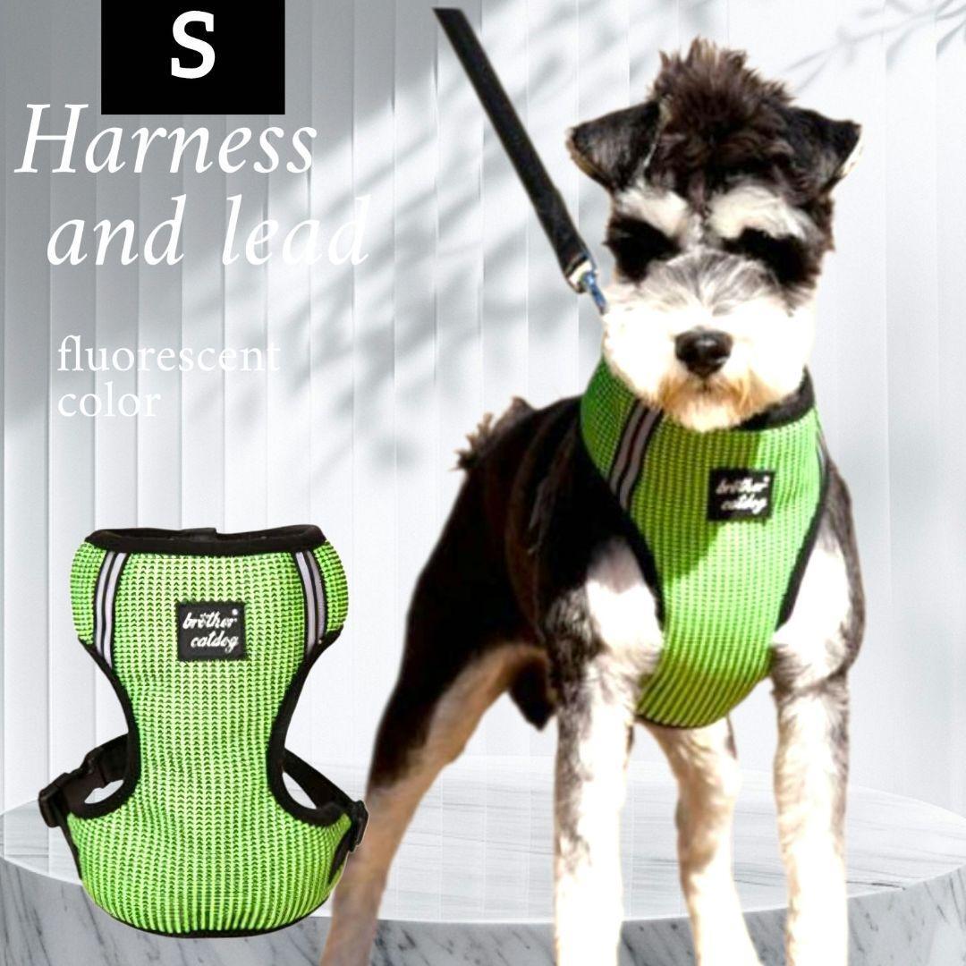 - 【新品】【S】犬用 ハーネスセット 蛍光イエローグリーン 軽量 クッション素材 蛍光色 チワワ プードル 行楽 散歩 旅行 お洒落 胴輪 リード