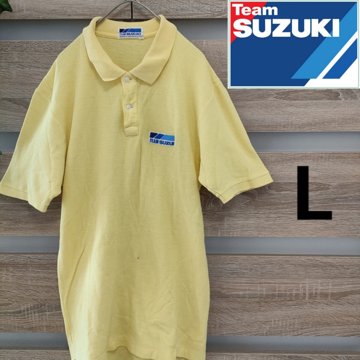 > TEAM SUZUKI 半袖ポロシャツ Lサイズ イエロー 美品②(34)ロゴ刺繍 スズキ希少トップス作業着作業服 ■宅急便コンパクト発送!