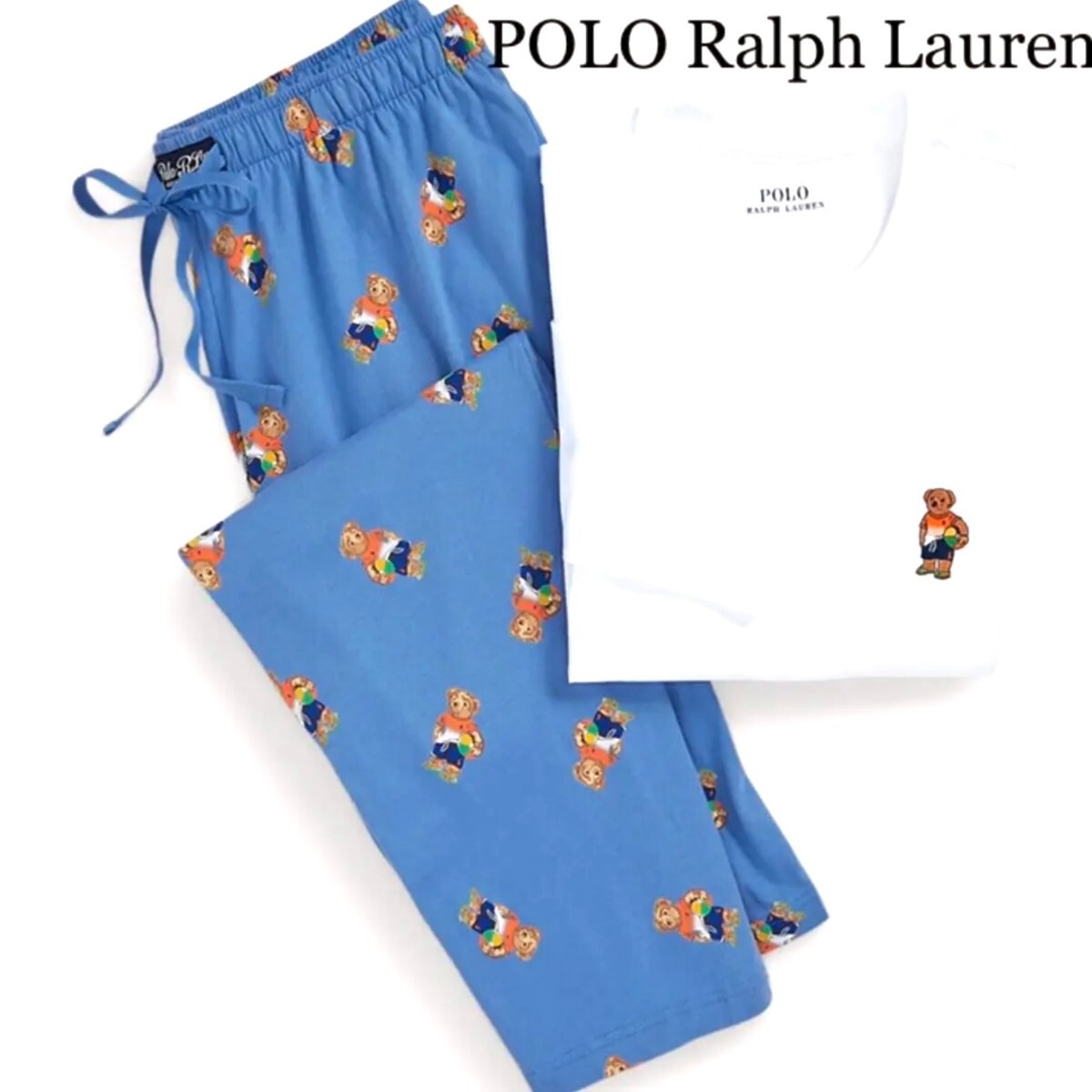 - ポロラルフローレン ポロベアー 新品 パジャマ 寝巻き 上下 ナイトウェア ブランド 正規 ホワイト 長袖Tシャツ ロゴ オシャレ polo メンズ