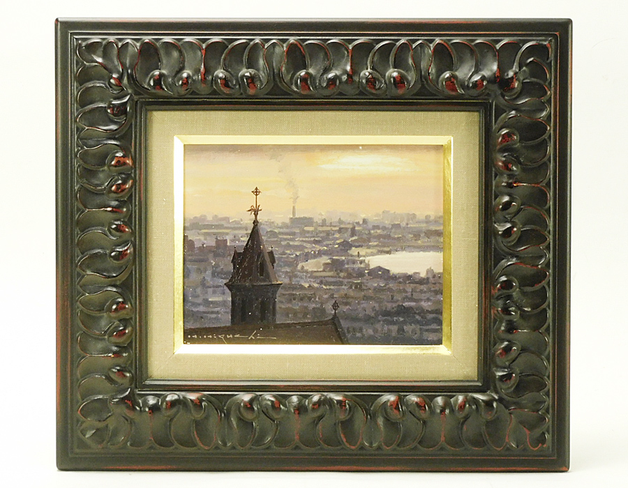 > 樋口洋 函館朝陽 F0 油彩 額装 専用タトウ 小さな油絵展出品作 師楢原健三 内閣総理大臣賞 示現会理事 日本美術家連盟会員 s25090306
