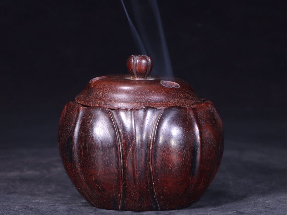 - 「清時代 老紫檀の木 彫り 蓮花形 香薰」極細工 擺件 賞物 古美術 骨董品 蔵出