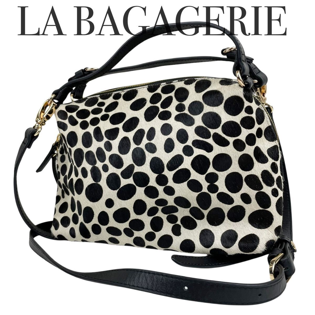 - LA BAGAGERIE ラバガジェリー レオパード柄 ショルダーバッグ ハラコ ハンドバッグ トートバッグ 2way ホワイト 白