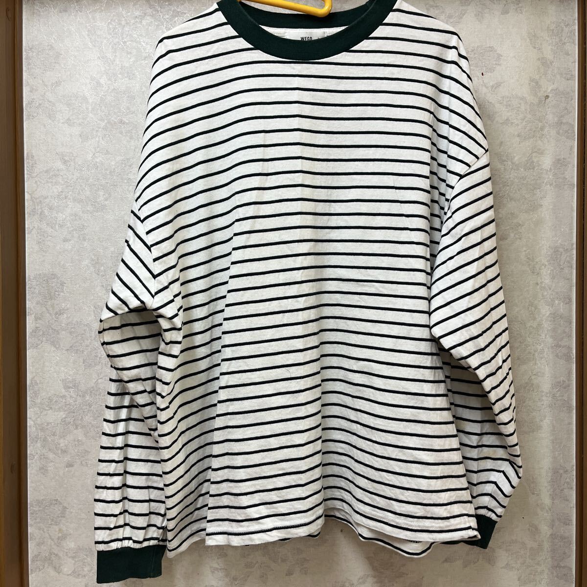 - ★WE GO★ウィーゴー 長袖 カットソー L ボーダー 白ホワイト深緑モスグリーン コットンシャツ 綿100%