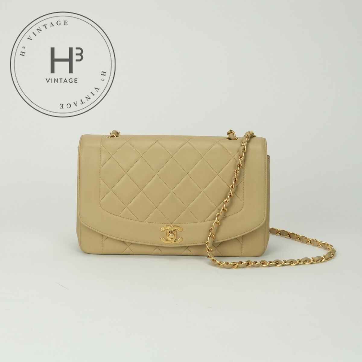 > シャネル CHANEL ダイアナ マトラッセ バッグ ショルダーバッグ ラムスキン ベージュ ゴールド金具