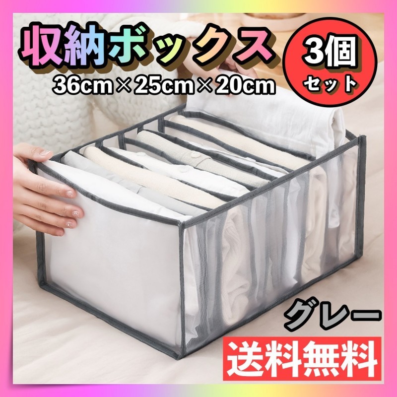 - 収納ボックス 3個セット グレー 灰色 メッシュ 衣類収納 仕切り ケース