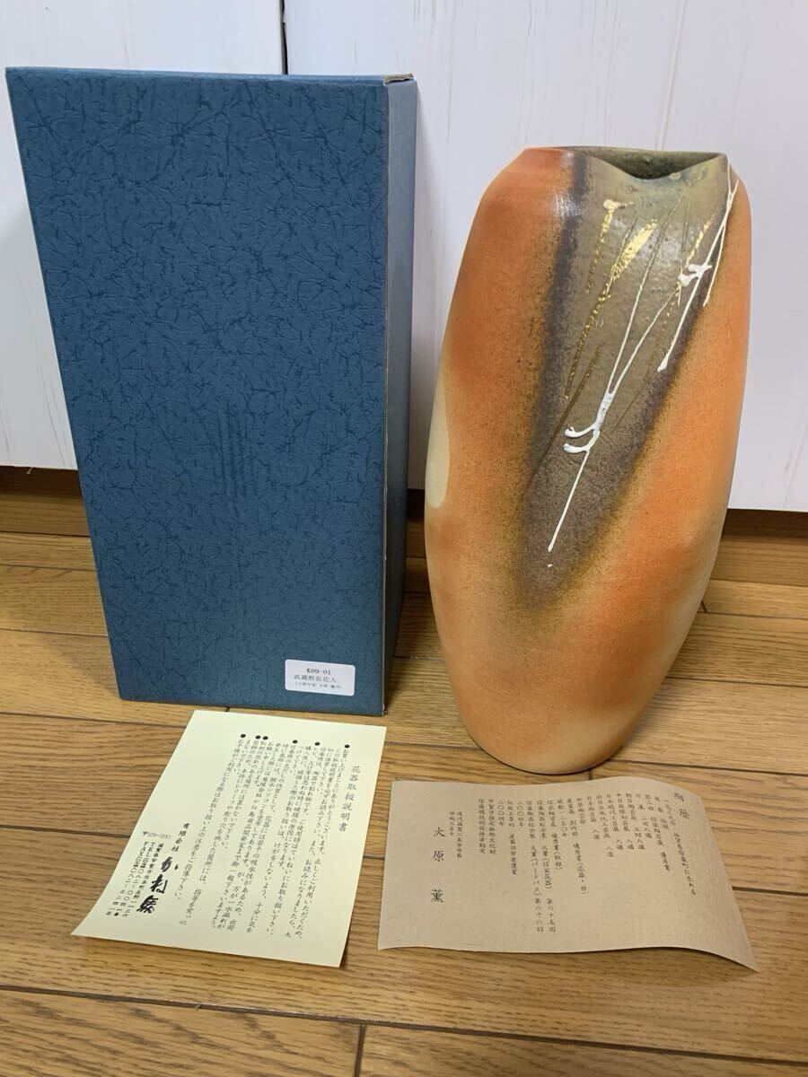 > 信楽焼 大原薫 武蔵野長花入 花生 陶器 高さ30㎝ 花瓶 花入れ 花器 フラワーベース 工芸品