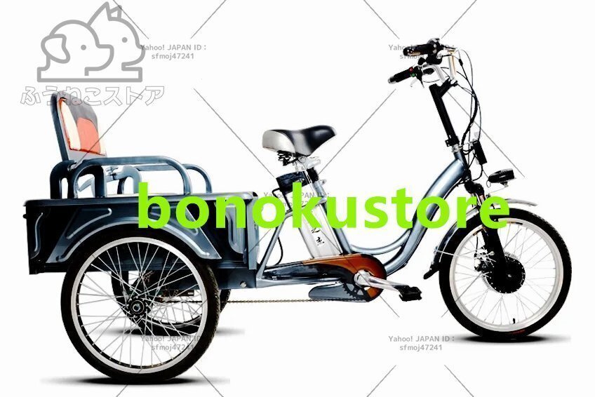- 品質保証★24インチ高炭素鋼フレームリチウム電池三輪車 三輪車電動アダルトパワーアシスト三輪車マンパワー 親用の拡大バスケット付き