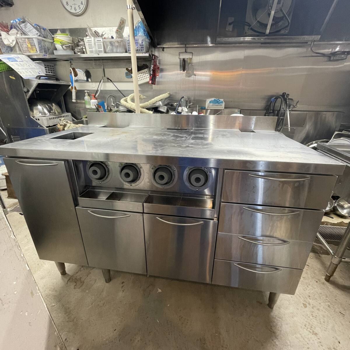 - 【札幌店開店二周年記念セール!!/引出し付き作業台(カップホルダー付き)/1450×750×900/中古美品/札幌発】NO.1566-134