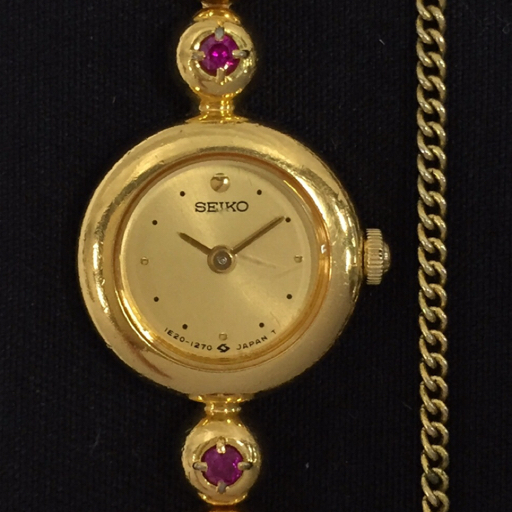 - セイコー クォーツ 腕時計 1E20-0420 レディース ゴールドカラー文字盤 未稼働品 純正ブレス ファッション小物 SEIKO