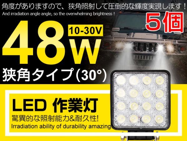 - 激安 5個 16連 48W LED作業灯 夜釣り/船舶/トラック/建築機械向け/各種作業車対応 DC10V/30V LEDワークライト 業界最高ホワイト(102C)