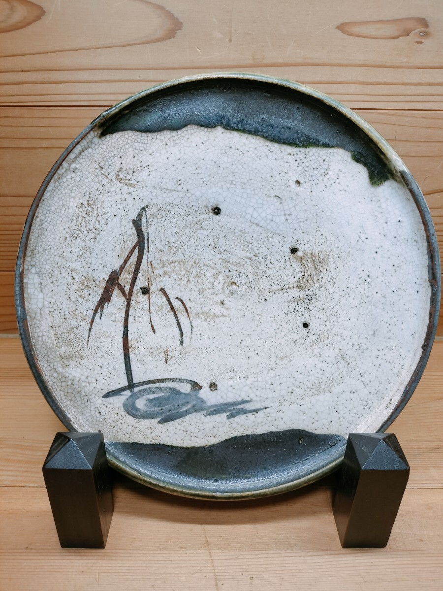 - 骨董 茶道具 古い 美濃焼 古美濃 織部 柳文 行燈皿 行灯皿 石皿 古陶磁 飾皿 絵皿アンティークコレクション 当時物 時代物 陶器