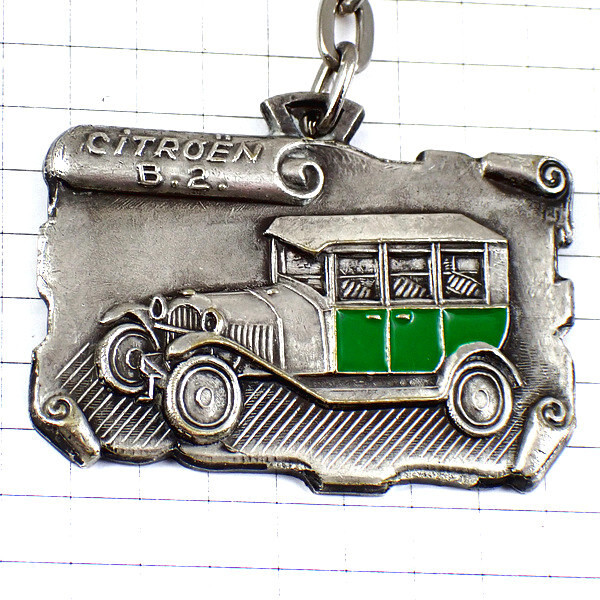 - キーホルダー・アンティークカー車シトロエンB2ドア銀色 CITROEN FRANCE◆フランス限定ポルトクレ◆レアなヴィンテージものアンティーク