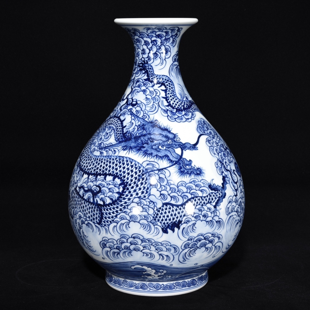 - 清時代 雍正年製 古陶磁器 青花 龍紋 玉壺春瓶 花瓶 磁器 陶芸 擺件 時代物 古董品 骨董 旧家蔵出し 唐物 中国古玩 古美術品