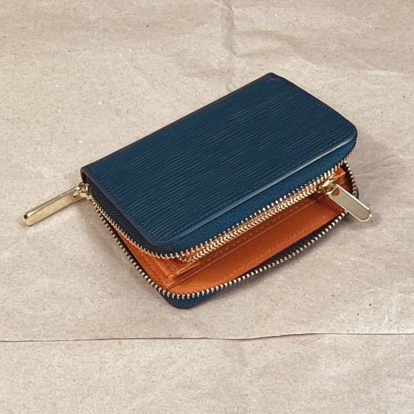 - 【田中革具】 紺色 オレンジ コンパクト財布 エピレザー ジッピーウォレット ラウンドファスナー 革財布 コインケース 売切 1円 メンズ財布