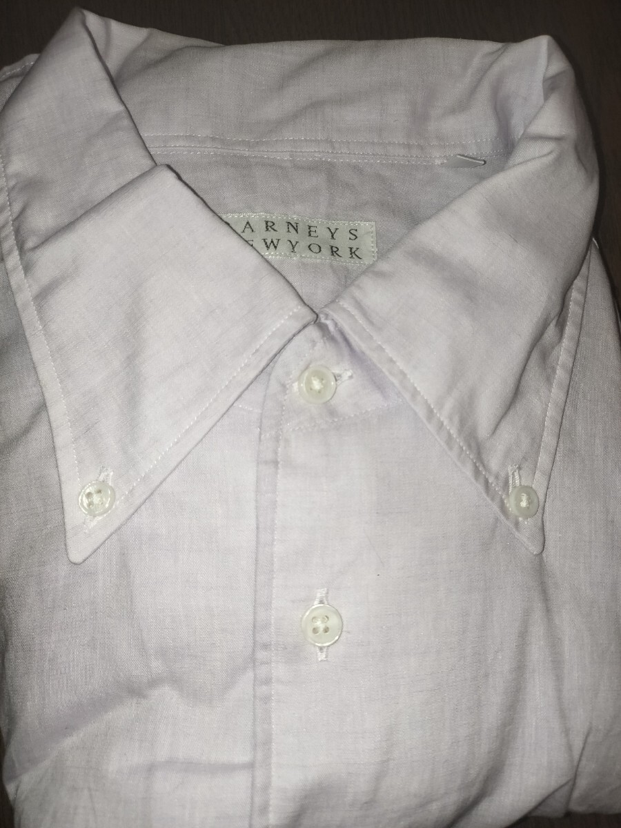 - バーニーズニューヨーク barneys new york 長袖シャツ パープル 無地 コットンリネン ボタンダウン 日本製 格安! XL 43/89