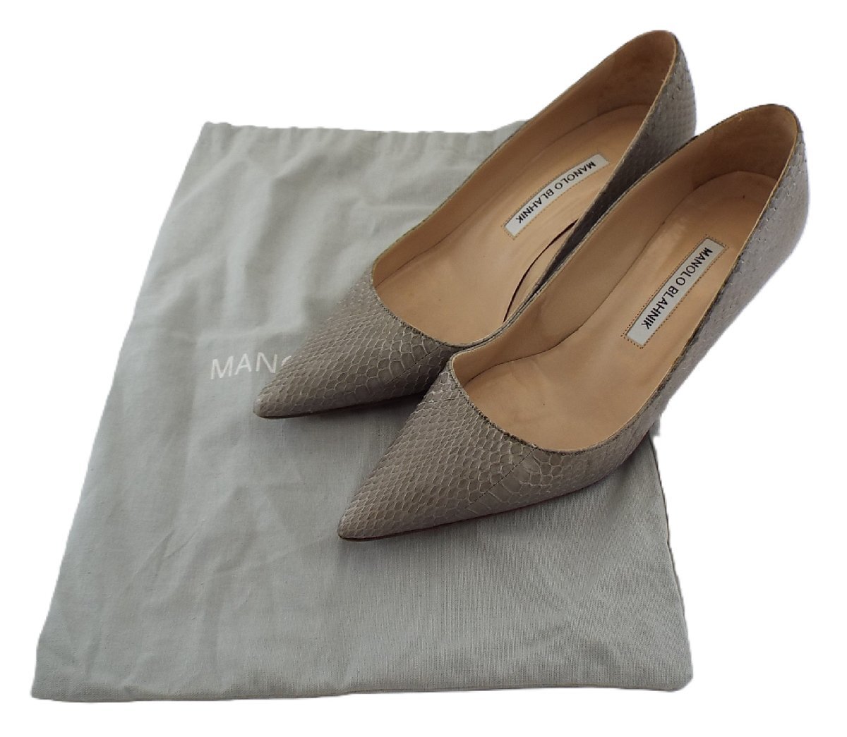 - T3949〇MANOLO BLAHNIK(マノロ ブラニク)パイソン ハイヒール パンプス ベージュ系 サイズ38.5