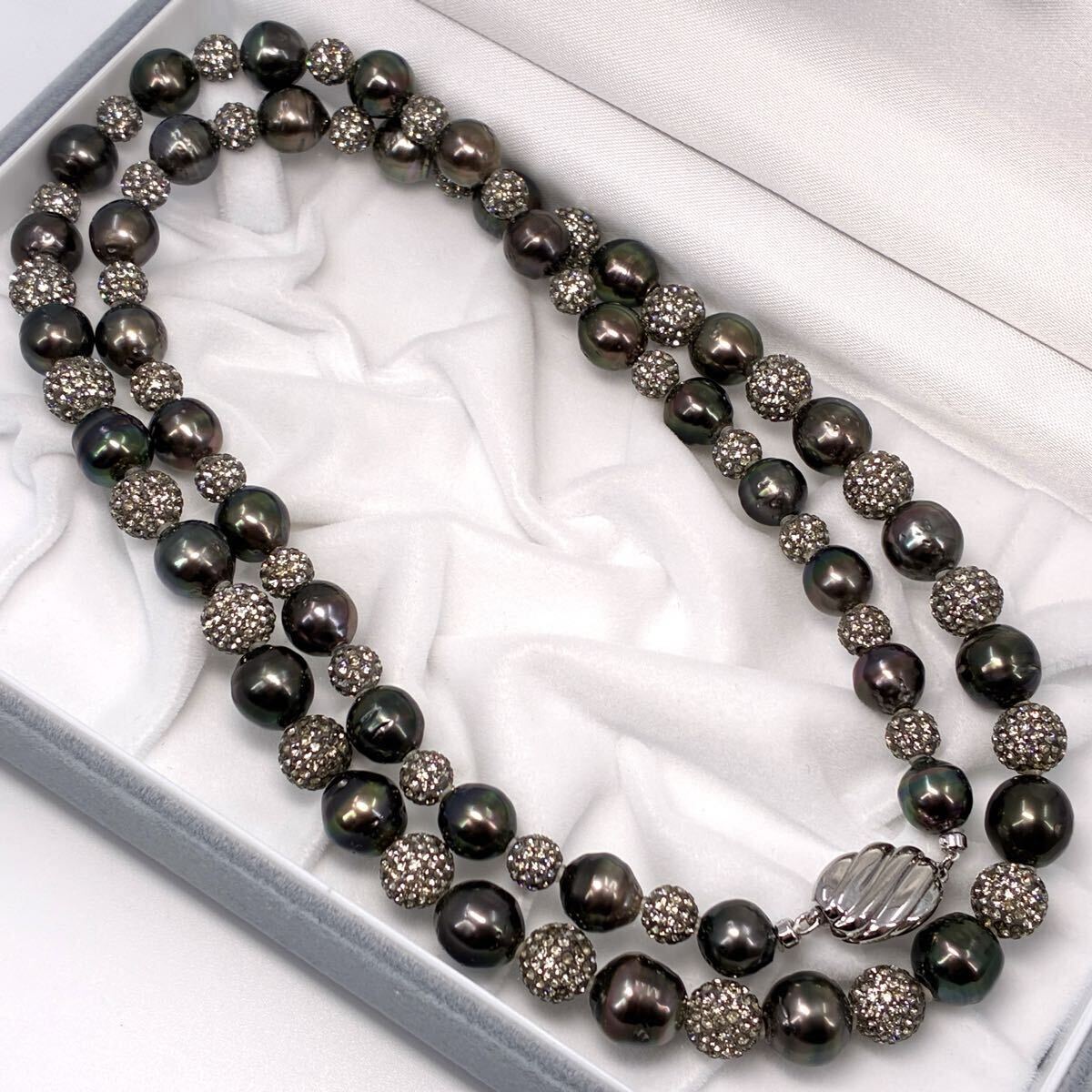 - 【照り強】黒蝶真珠 クロチョウ 本真珠 南洋パール ジュエリー ネックレス 8.1〜9.9mm 全長69cm 59.0g pearl necklace SILVER刻印 シルバー