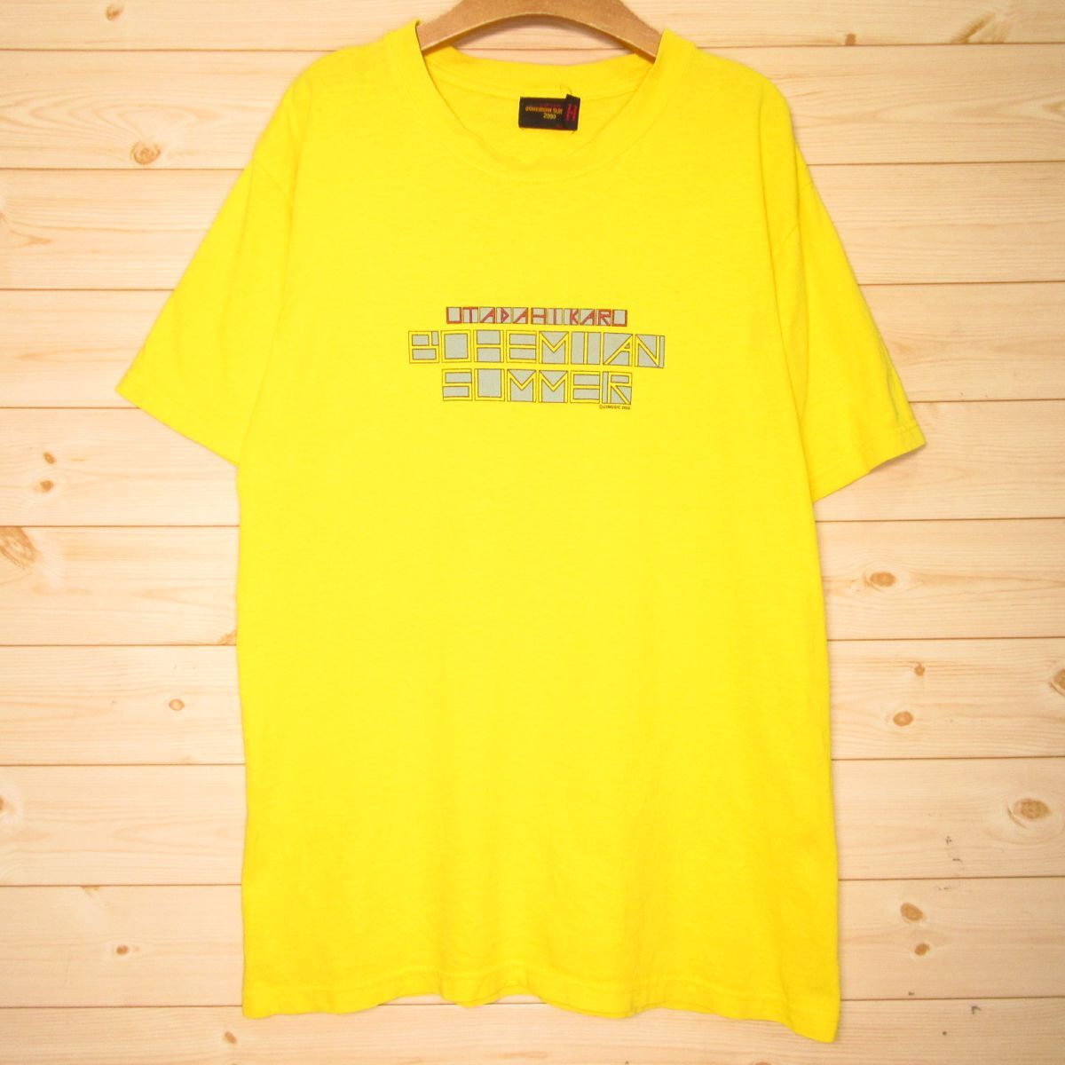 > ◎宇多田ヒカル ボヘミアンサマー 2000年 ツアー Tシャツ 半袖 音楽 TEE グッズ ヴィンテージ メンズ 黄 イエロー L相当◆AA4426