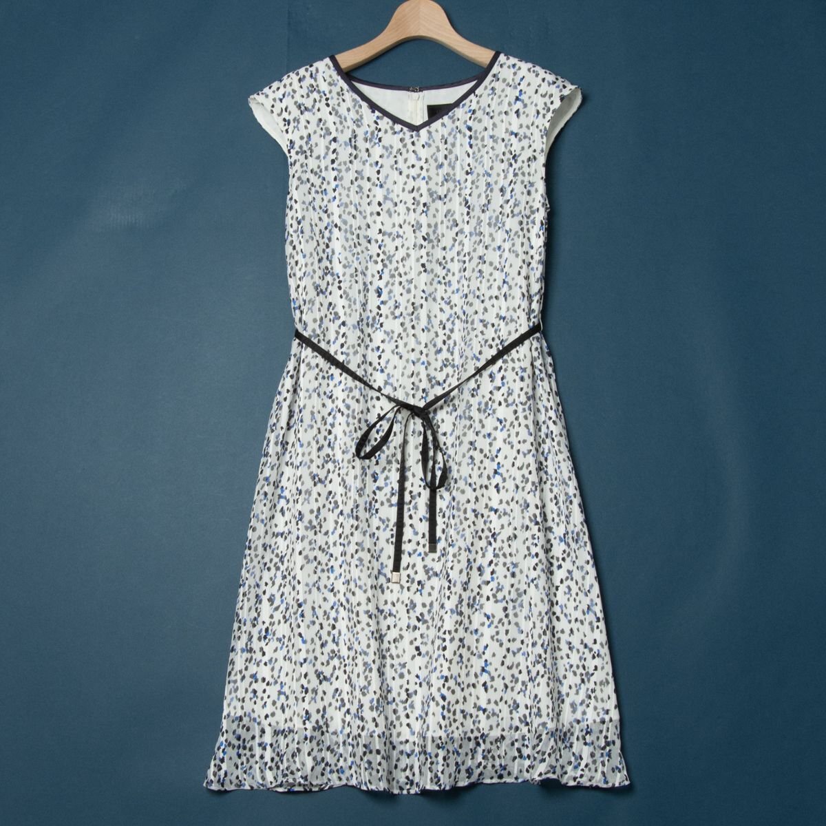 - UNTITLED アンタイトル 1 Vネック ノースリーブワンピース 総柄 プリント ホワイト 裏付き ポリ100% レディース 春夏 フェミニン