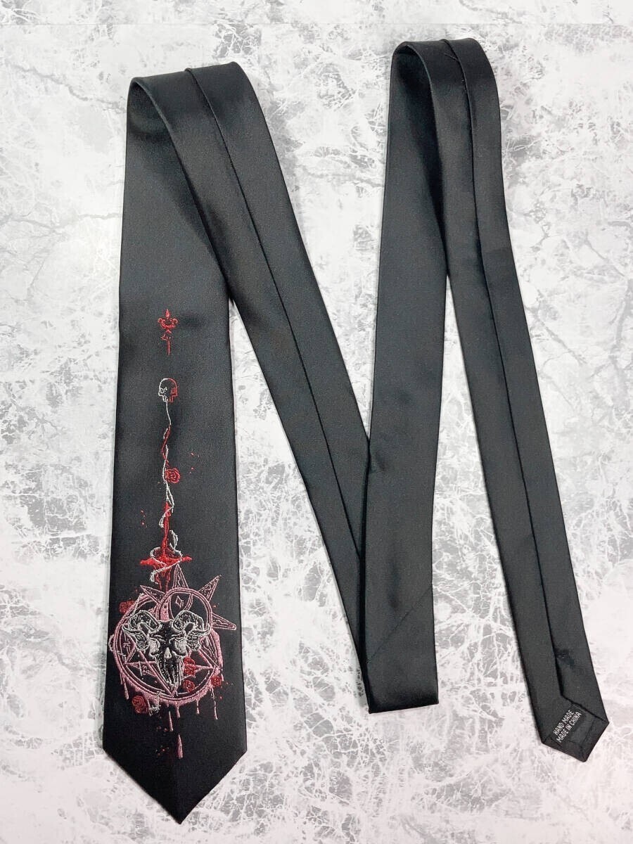 - ◆同梱発送可◆「ネクタイ 悪魔/バフォメット 山羊/ヤギ 髑髏/スカル 六芒星 黒」fire_sale 【タグ:アクセサリー】