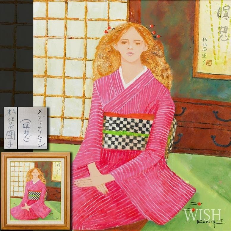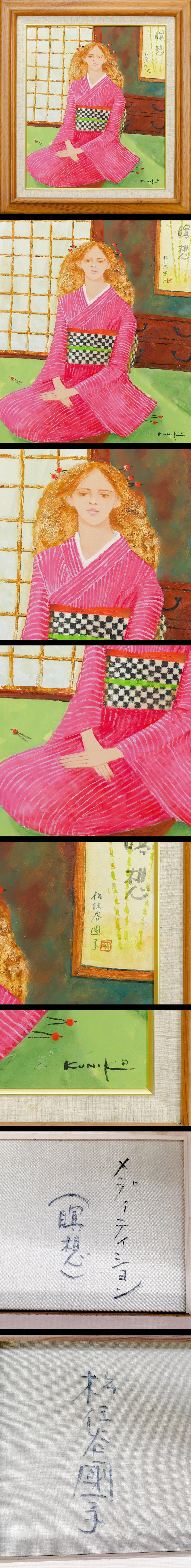 > 【真作】【WISH】松任谷國子「メディティション(瞑想)」油彩 10号 ◆柔和な眼差しの和装美人 〇二科会理事 松任谷千鶴二人展 #25092397
