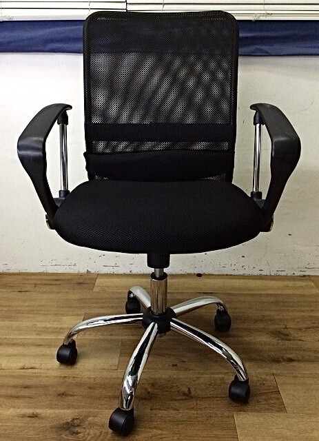 - 肘掛け付 デスクチェア 黒 ブラック メッシュバック キャスター付 座面 メッシュ 事務椅子 オフィス テレワーク 家具 中古品 管53898113-3