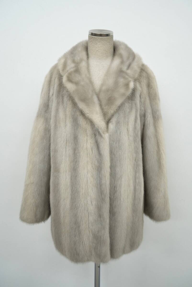- ☆サファイアミンク☆ハーフコート☆着丈70cm☆13号☆裏地裾に刺しゅうあり☆