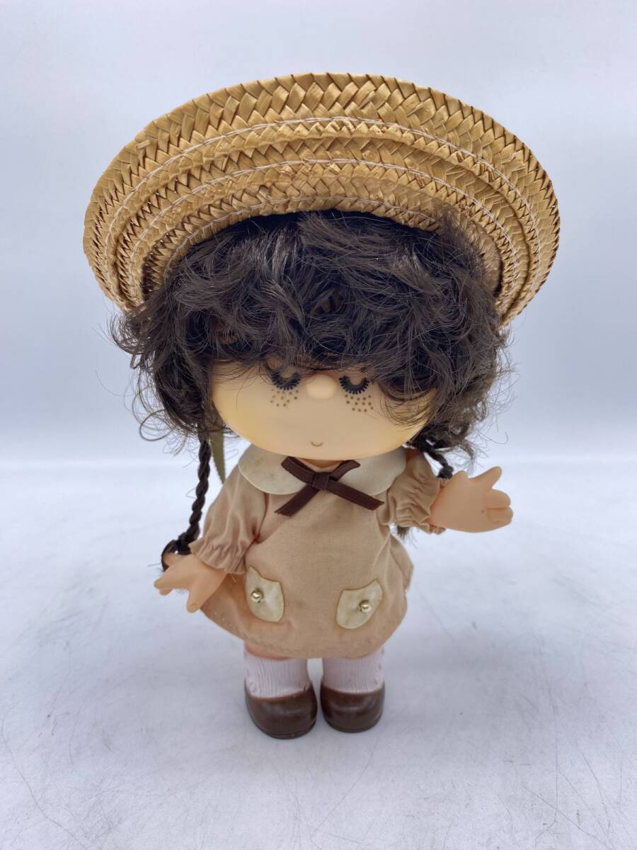 - 水森亜土監修 すみれ組メグちゃん 三つ編み 麦わら帽子 昭和レトロ すみれちゃん 当時物 コレクション ソフビ人形(13352)