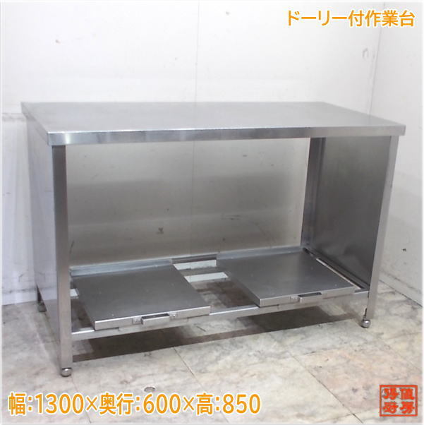- ステンレス ドーリー付作業台 1300×600×850 業務用 中古厨房/24M1044Z