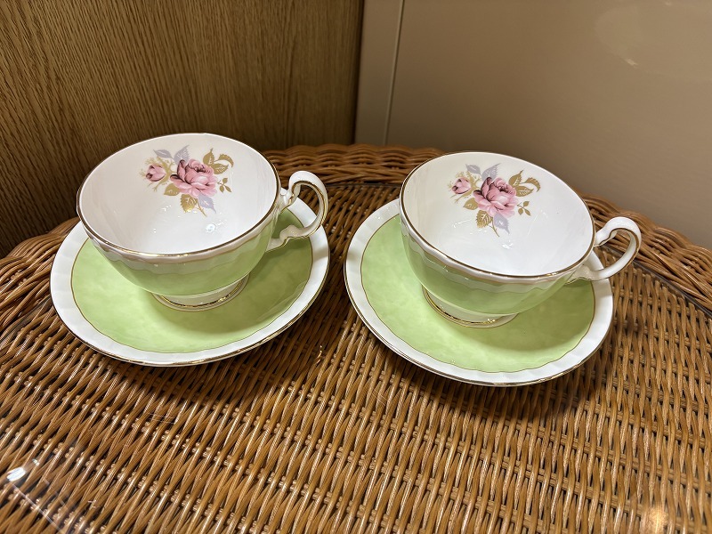 - AYNSLEY エインズレイ エイシアンローズ グリーン カップ&ソーサー 2客 ティーカップ 洋食器 英国製