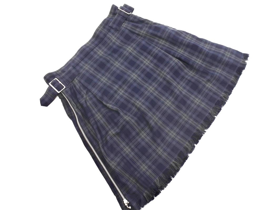 > RNA アールエヌエー チェック フリンジ タック Aライン 台形 スカート sizeM/グレー ◇■ ☆ fic2 レディース