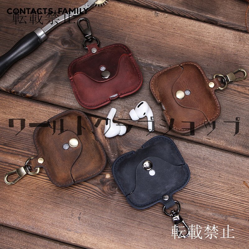 - 本革イヤホンケース AirPods Pro対応 全面保護タイプ スナップボタン付き フリップ式カバー Appleワイヤレスイヤホン用保護カバー