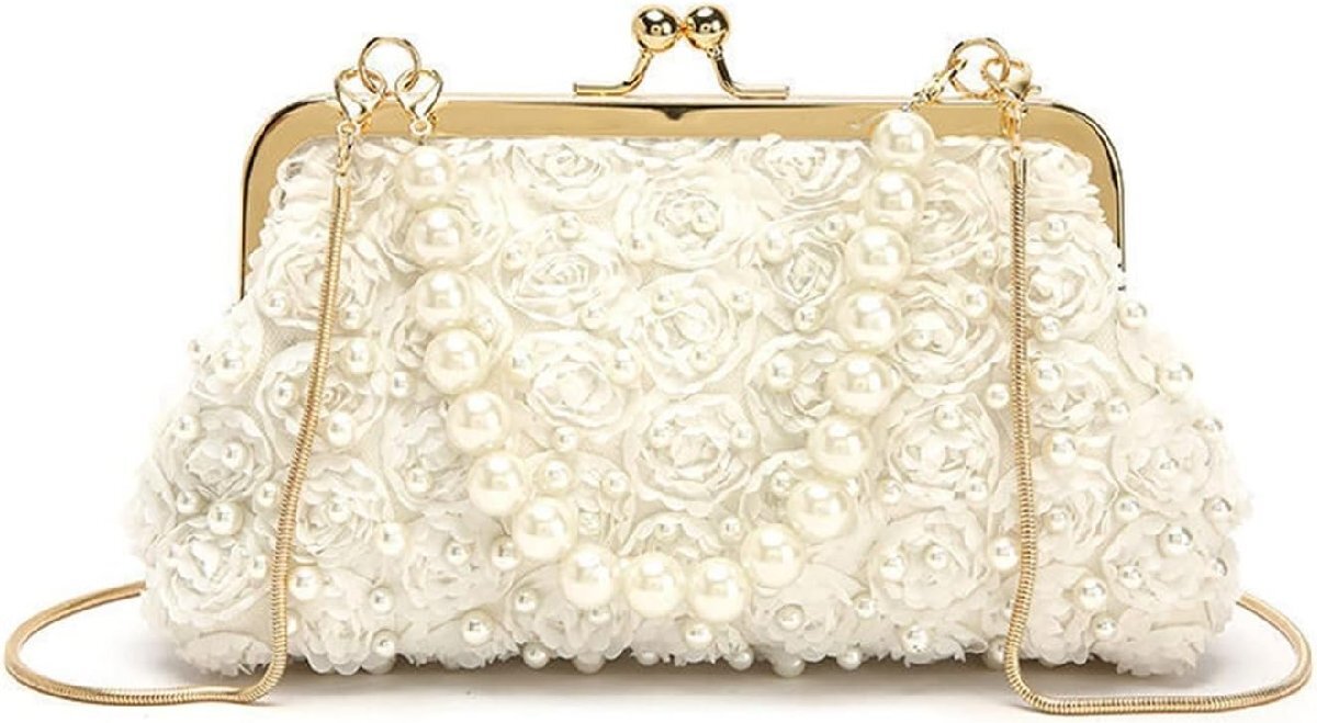 - 女性真珠イブニングバッグ手作りビーズ刺繍クラッチバッグ (Color : White, Size : 20x6x12cm)