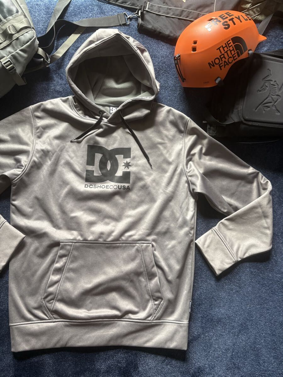 > 超美品 定価12,100円 DC SHOES USA スノボジャケット SNOW HOODIE 裏起毛 プルオーバー ソフトシェル パーカー ジャケット sizeL グレー系