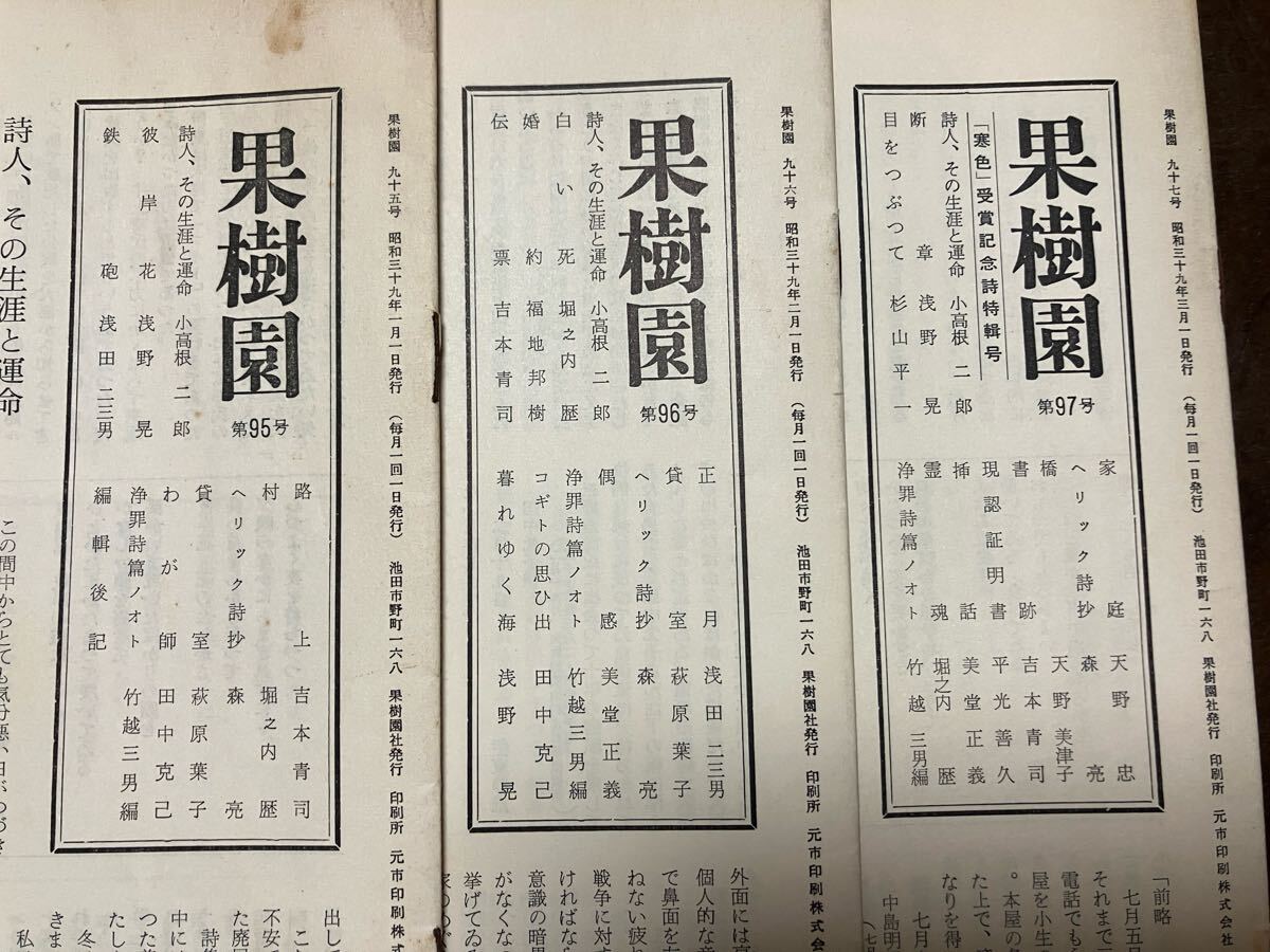 - 果樹園 第95〜97号一括 昭和39年 コギトの思ひ出 田中克己 小高根二郎 浅野晃 森亮 萩原葉子 林富士馬