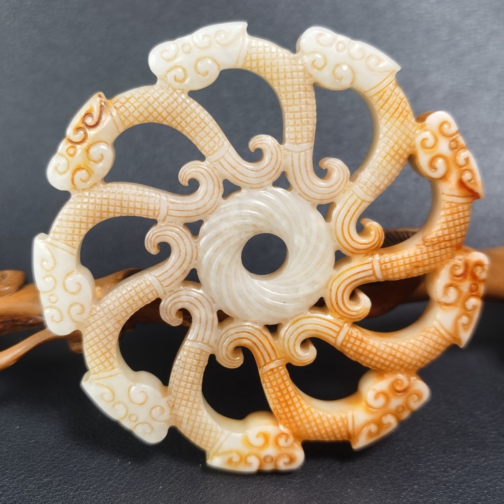 - 和田玉 秘藏 清代 古九龍玉佩・玉牌 古玉 白玉 唐物 古玉彫 天然石 稀少珍品 古美術 古賞物 古置物 旧蔵 9.22