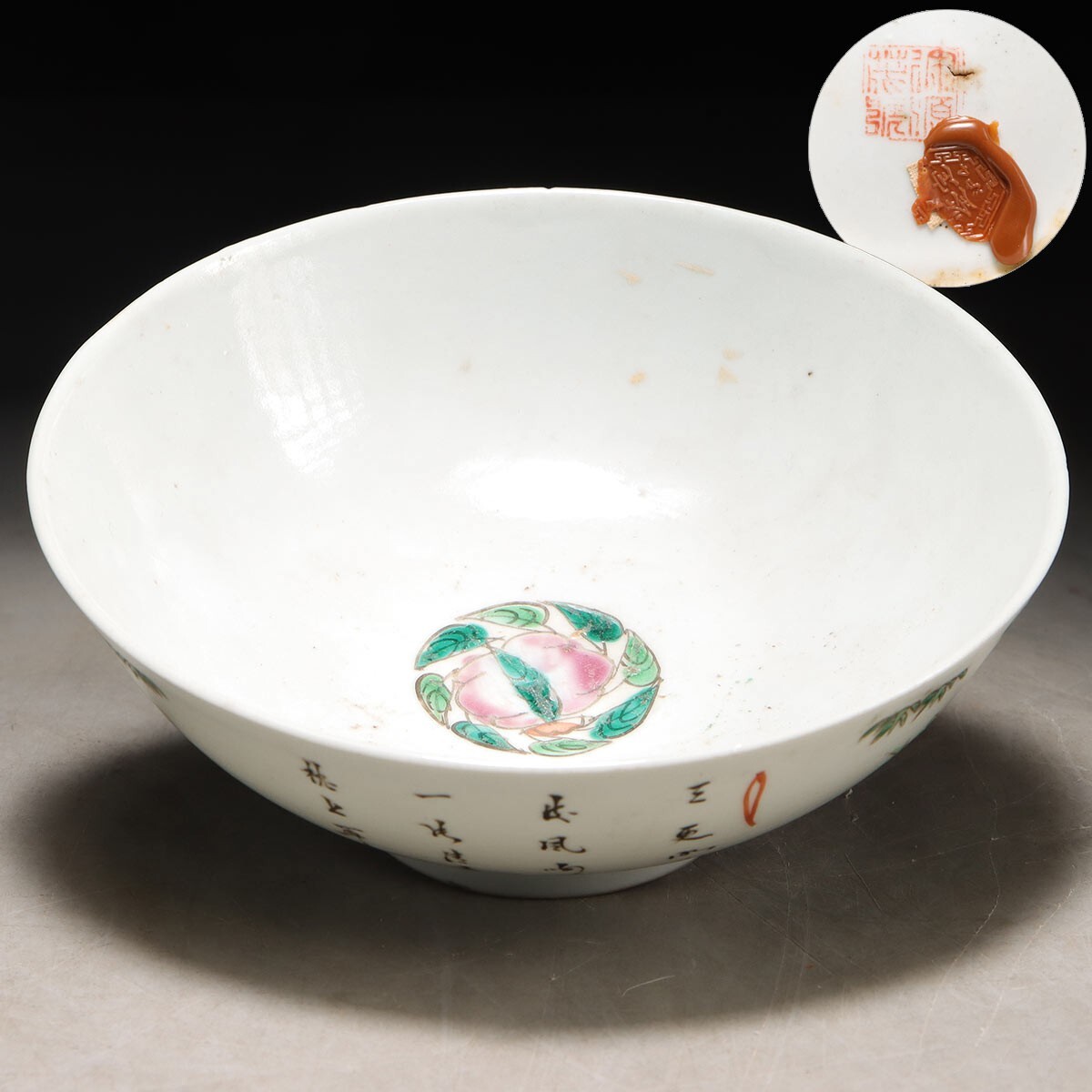 中国古玩 色絵漢詩刻碗 蝋印有の出品です。
