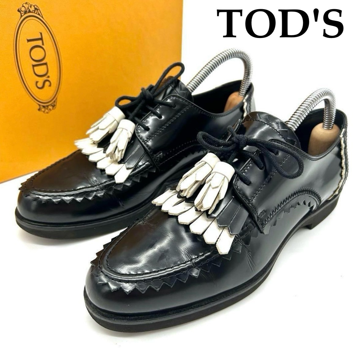 > 美品 TODS トッズ 24.5cm ローファー タッセル フリンジ シューズ 靴 37.5 ブラック 黒 レディース