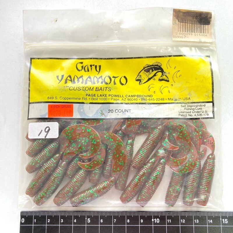 - 815106 ゲーリーヤマモト 4インチ シングルテールグラブ 19本 GARY YAMAMOTO #140 シナモン/グリーンフレーク オールド品