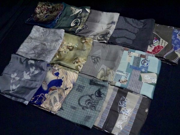 - 【KIRUKIRU】<6>アンティーク 男物 長襦袢 13点 大量!全て正絹(商品説明内に詳細画像あり)着物 古布 古裂 リメイク 材料 ジャンク